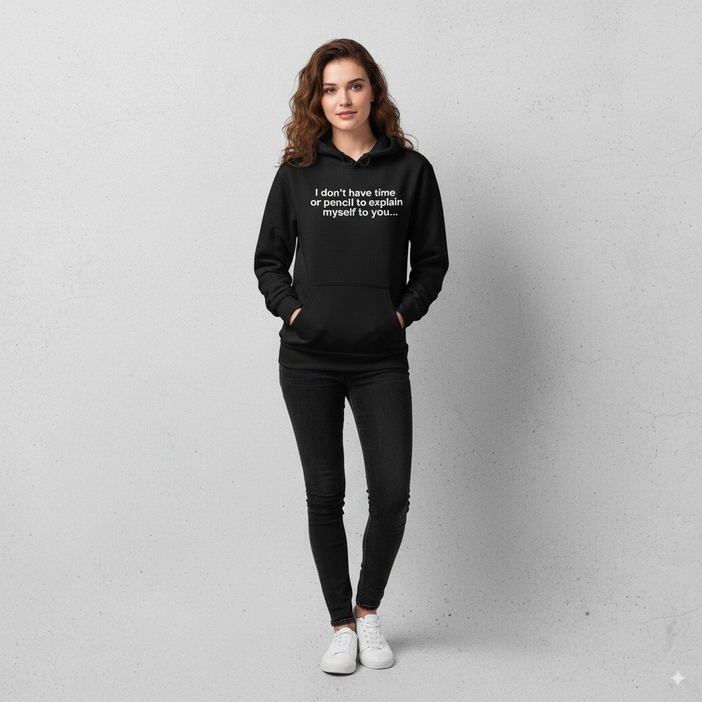 I don't have time or pencil to explain myself to you 25,00 € Desconto de %. Partilhar Tamanho S M L XL Cor Branco Preto Comprar Contactar SKU: YA003 Para quando te apetece explicar… mas depois lembras-te que não tens tempo (nem paciência 😏✏️). O Hoodie ideal para quem já não perde energia com gente difícil. Marca Ya Pois Características