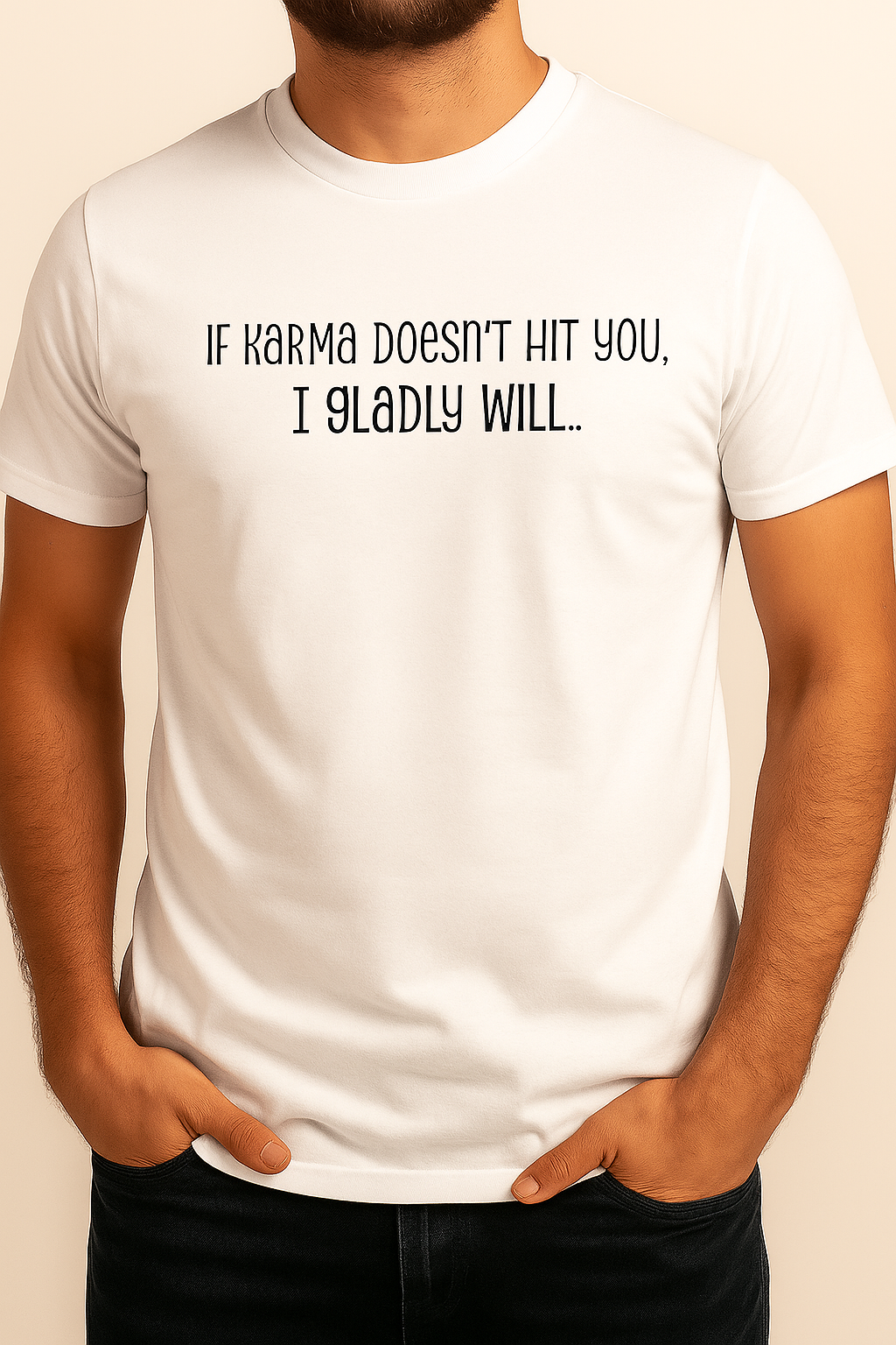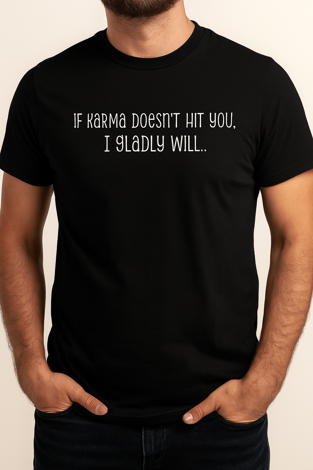 If karma doesn't hit you, I gladly will… 15,00 € Desconto de %. Partilhar Tamanho S M L XL Cor Branco Preto Comprar Contactar SKU: YA001 Entre o karma e o teu humor... boa sorte. A t-shirt perfeita para quem já perdeu a paciência mas não o estilo 😌 Marca Ya Pois Características