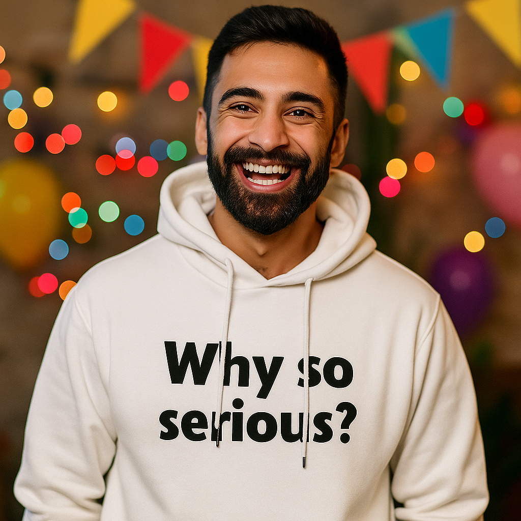 Why so serious? 25,00 € Desconto de %. Partilhar Tamanho S M L XL Cor Preto Branco Comprar Contactar SKU: YA004 A vida é curta demais para caras fechadas. 😜✨ Veste o hoodie que mostra ao mundo que o melhor remédio é rir… sempre! 😂💥 Marca Ya Pois Características